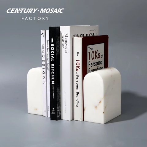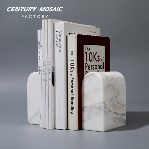Centurymosaic Gloriousホワイト天然石ホワイト大理石ブックエンド台形アーチ型本棚卸売りホームオフィスアプリケーション