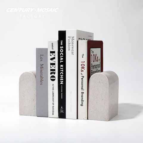 Centurymosaicアイボリートラバーチン天然石大理石ベージュブックエンド台形アーチ型本棚カスタム卸売本ホルダースタンド