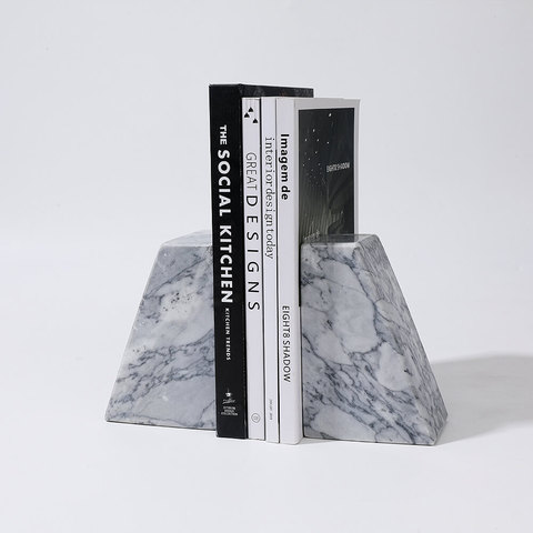 Centurymosaic Venato天然石大理石ブックエンドグレー台形アーチ本棚卸売りカスタムブックホルダースタンド