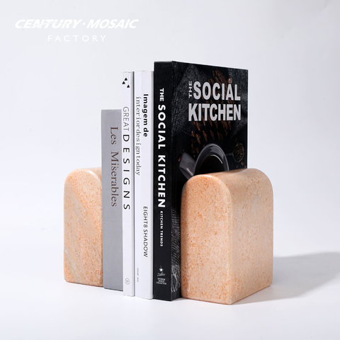 Centurymosaicサニーローザ天然石黄色大理石ブックエンド台形アーチ型本棚卸売り本ホルダースタンド