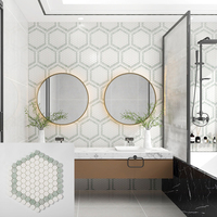 センチュリーモザイク六角形モザイクタイルホワイトグリーンモザイクウォールタイルバスルームキッチンフロア