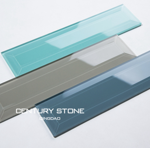 3x12レイクブルーベベルクリスタルガラス地下鉄バスルームタイルデザイン